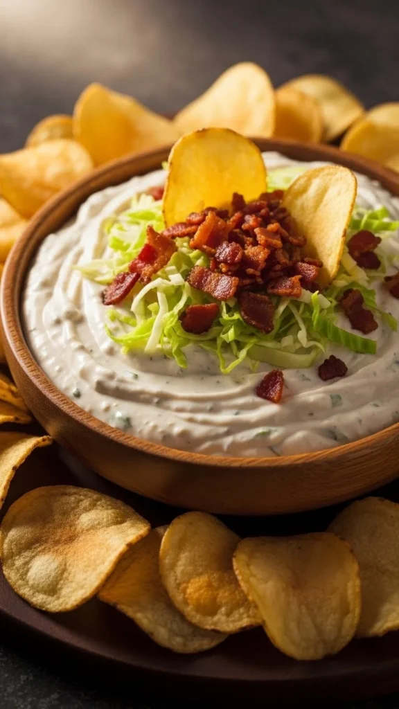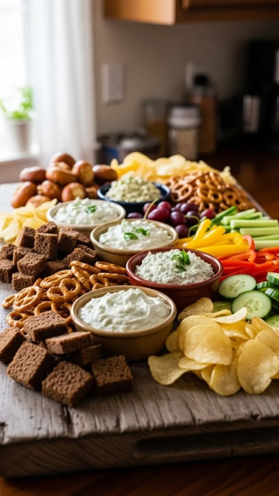 Serve with ridged potato chips, pretzel twists, and rye bread cubes. Add a sprinkle of chives and a pinch of black pepper right before guests arrive. For a party tray, surround with cucumber rounds and celery sticks for crunch. Keep it cold on the table by setting the bowl over a small ice pack tray. If it thickens too much, stir in 1–2 tbsp milk to loosen.