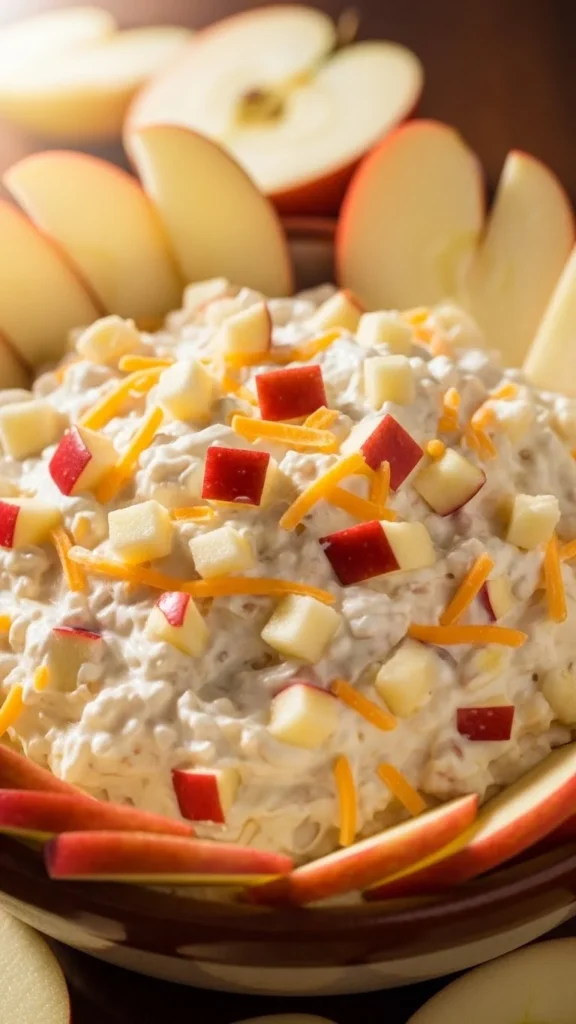 This dip balances sharp cheddar with sweet-tart apple for a snack that feels fun and a little unexpected. It’s creamy, crunchy, and great for boards. The apple keeps every bite bright, while cheddar keeps it satisfying. It pairs beautifully with crackers and sliced fruit. Perfect for daytime parties.