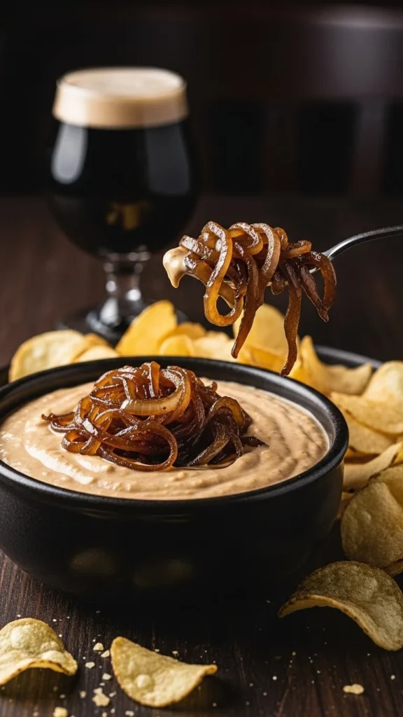 This dip brings deep, savory flavor from caramelized onions and a splash of stout. It tastes rich and slightly sweet, like onion soup vibes but party-friendly. The stout adds warmth without making it bitter. It’s the kind of dip that disappears fast next to kettle chips. Make it ahead and it turns even more flavorful after a short chill.
