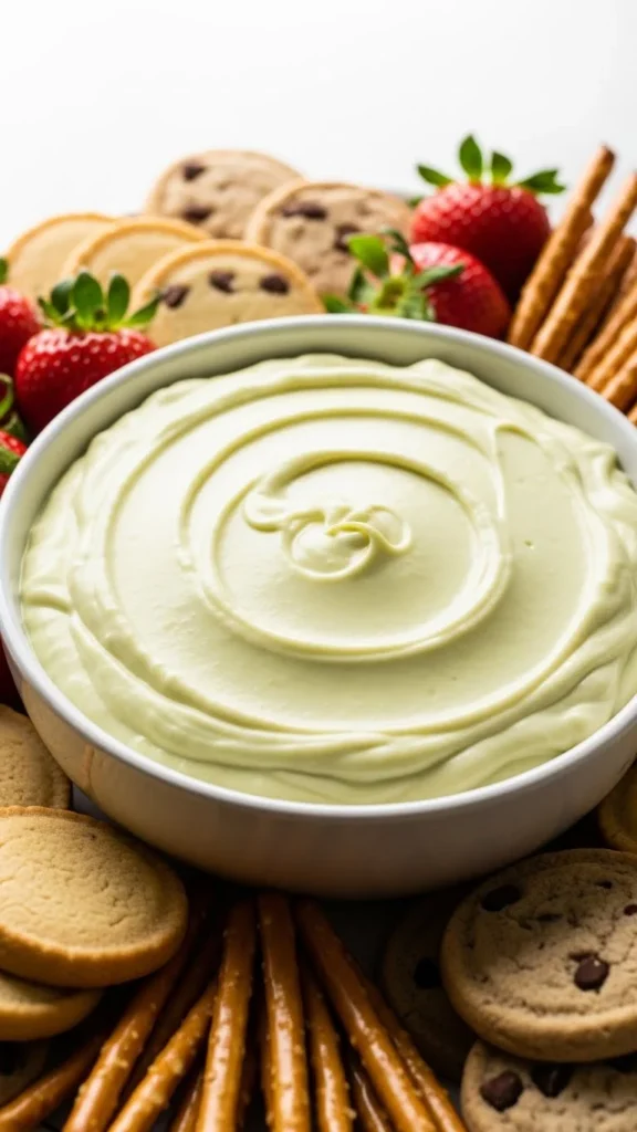 For a fun St Patrick’s Day dessert dip, chocolate and mint always win. This one is creamy, fluffy, and lightly green, which makes it festive without being too intense. It pairs perfectly with strawberries, cookies, and pretzels. It’s fast to mix and looks great on a dessert board. Kids and adults both go for it.