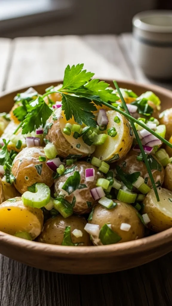 This salad feels creamy and filling. Herbs bring fresh color. Easy to prep ahead. Great chilled side. Familiar comfort.