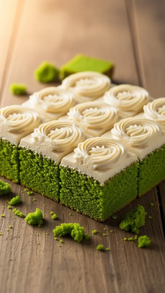 This cake brings bold color with a soft crumb that stays moist. Baking it as a sheet cake makes serving easy. The green hue feels festive without extra effort. Simple flavors appeal to everyone. Great for large gatherings.