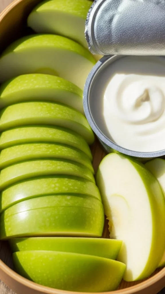 Crisp apples and creamy dip make a fresh, simple lunchbox snack.