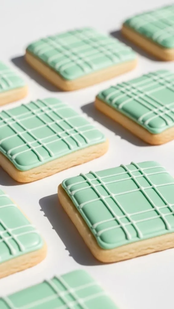 These green plaid cookies feel cozy and festive at the same time, inspired by classic patterns associated with Irish celebrations. The flat surface makes them easy to decorate with straight icing lines. The soft sugar cookie base balances the sweetness of the icing well. They’re perfect for bakers who enjoy detail without complexity.