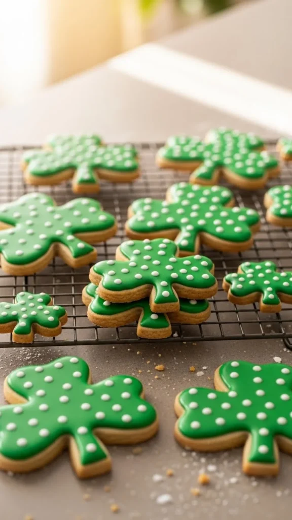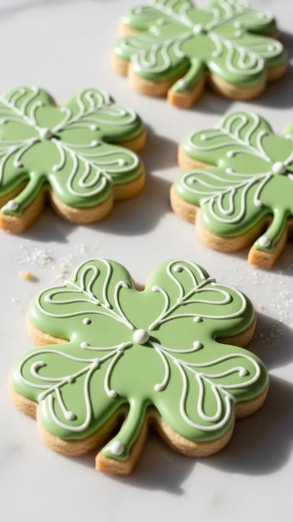 Clover leaf cookies symbolize good fortune and feel especially fitting for the holiday. The rounded edges help prevent overbaking. Simple piping keeps decoration relaxed and friendly. These are perfect for sharing in small batches.