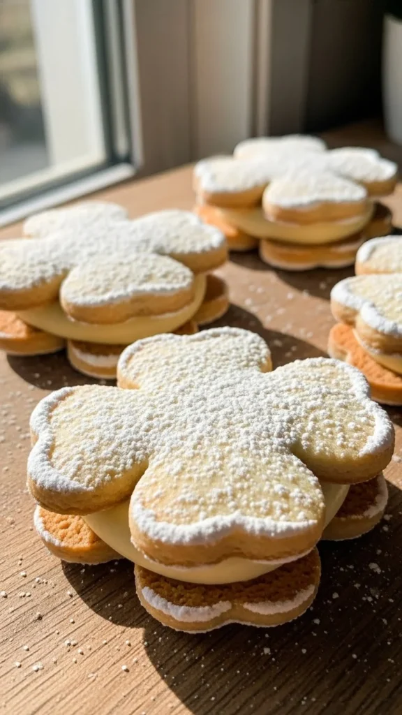 These sandwich cookies add a creamy center to the classic sugar cookie. The filling adds softness without overpowering sweetness. Clover shapes hold filling well. They feel special without extra decoration.