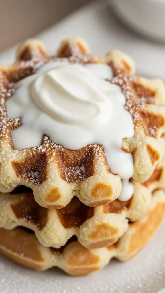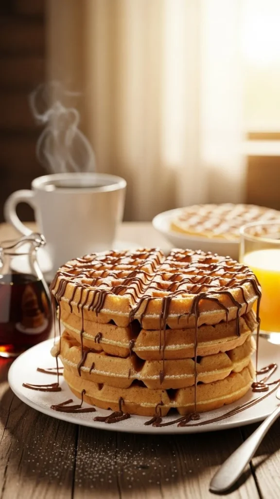 These waffles have a smooth vanilla flavor and a soft, fluffy texture. They feel special without being heavy and work well for holiday brunch spreads.