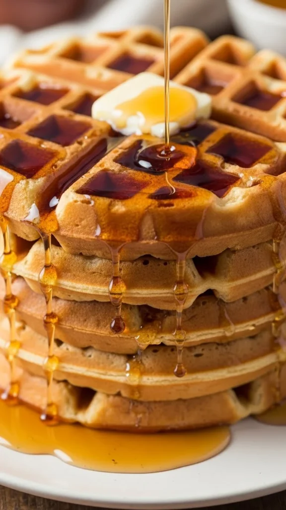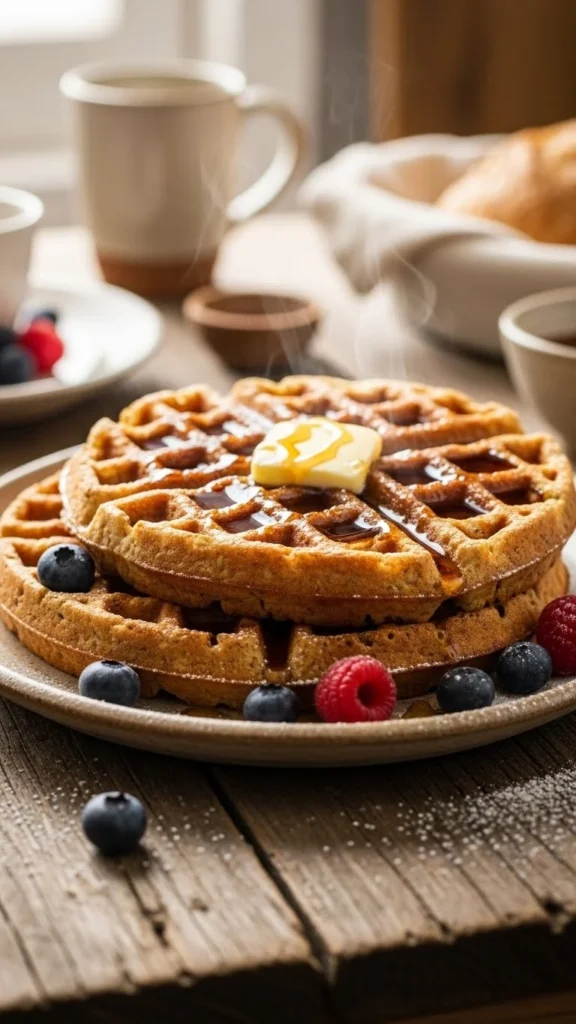 These waffles have a heartier bite thanks to oats while staying fluffy inside. They’re filling and comforting.
