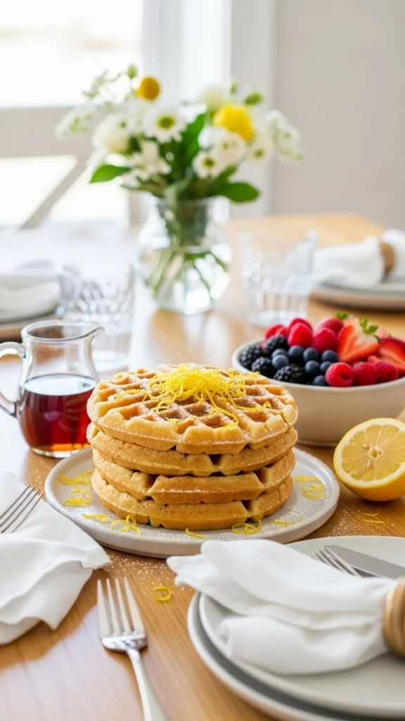 Bright lemon flavor makes these waffles feel fresh and spring-ready.