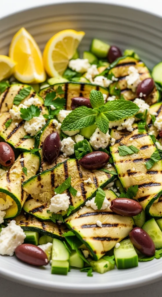 This salad is light but still feels like dinner when you add protein or serve it alongside something grilled. Grilled zucchini brings smoky flavor and a tender bite. Feta and olives add salty richness, and cucumbers keep it crisp. It’s perfect for hot evenings when you want something fresh. It also works well for meal prep if you keep dressing separate. Simple ingredients, big flavor, and very summer-friendly.