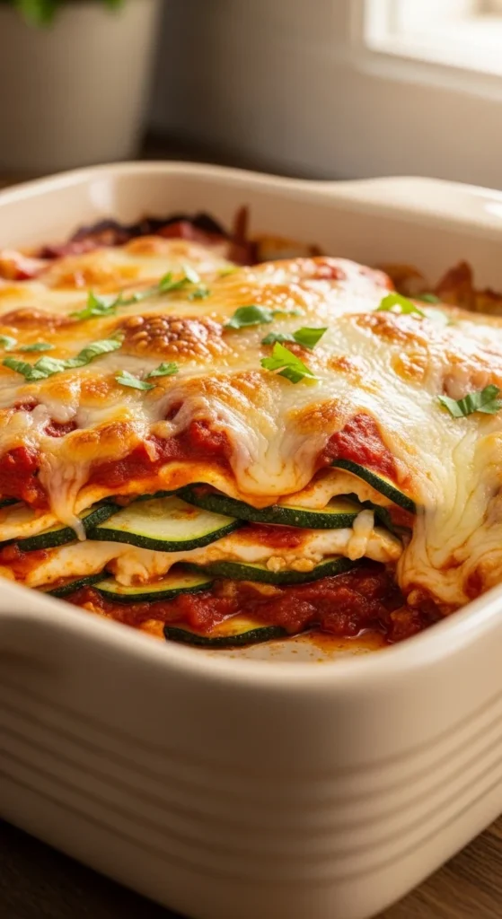 This bake gives enchilada comfort in a veggie-packed format that’s perfect for using lots of zucchini. The sauce keeps everything moist, and cheese on top makes it feel like a classic casserole night. You can add chicken or turkey if you want it extra hearty. The trick is slicing zucchini evenly and lightly salting it first to reduce water. It’s great for meal prep because it slices into portions easily. Cozy, cheesy, and family-friendly.