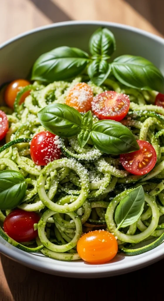 4. Pesto Zoodles With Cherry Tomatoes