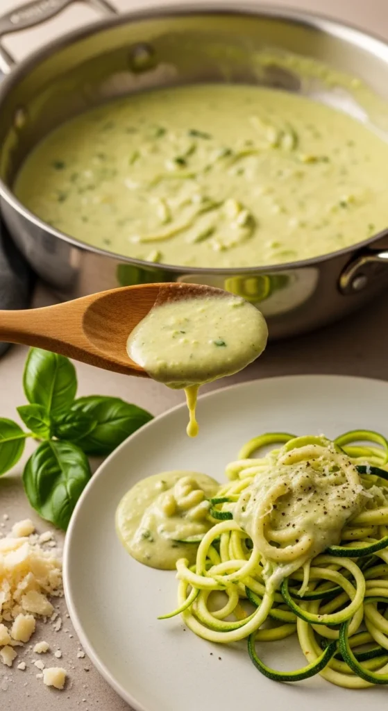 Spoon over zoodles or roasted cauliflower. Top with basil and extra parmesan. Add chili flakes for gentle heat. For summer, serve with a tomato-cucumber salad. For winter, pair with roasted chicken thighs.