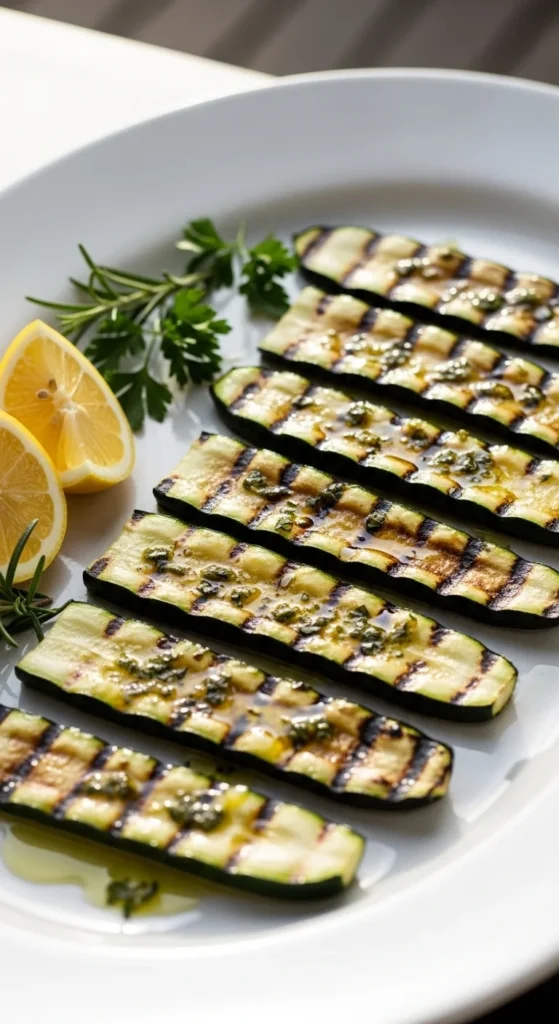 - Grill zucchini 2–3 minutes per side until charred and tender-crisp.